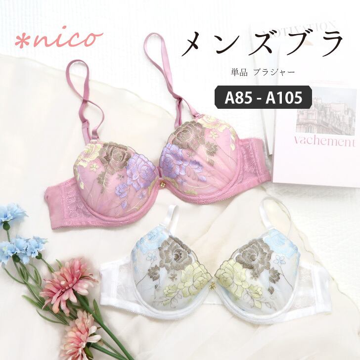 商品名(商品番号): パステルカラー ローズ刺繍 可愛い メンズランジェリー A85-A105 メンズ体型用 パッド入り 単品 ブラジャー (jm-3600-b)