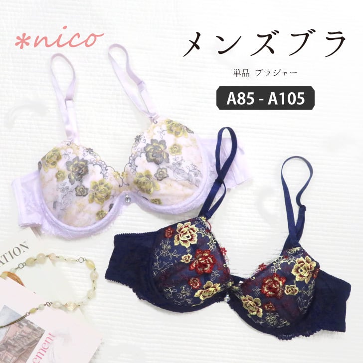商品名(商品番号): ローズ刺繍 メルヘン 高級感 大人可愛い メンズランジェリー A85-A105 メンズ体型用 パッド入り 単品 ブラジャー (jm-3636-b)