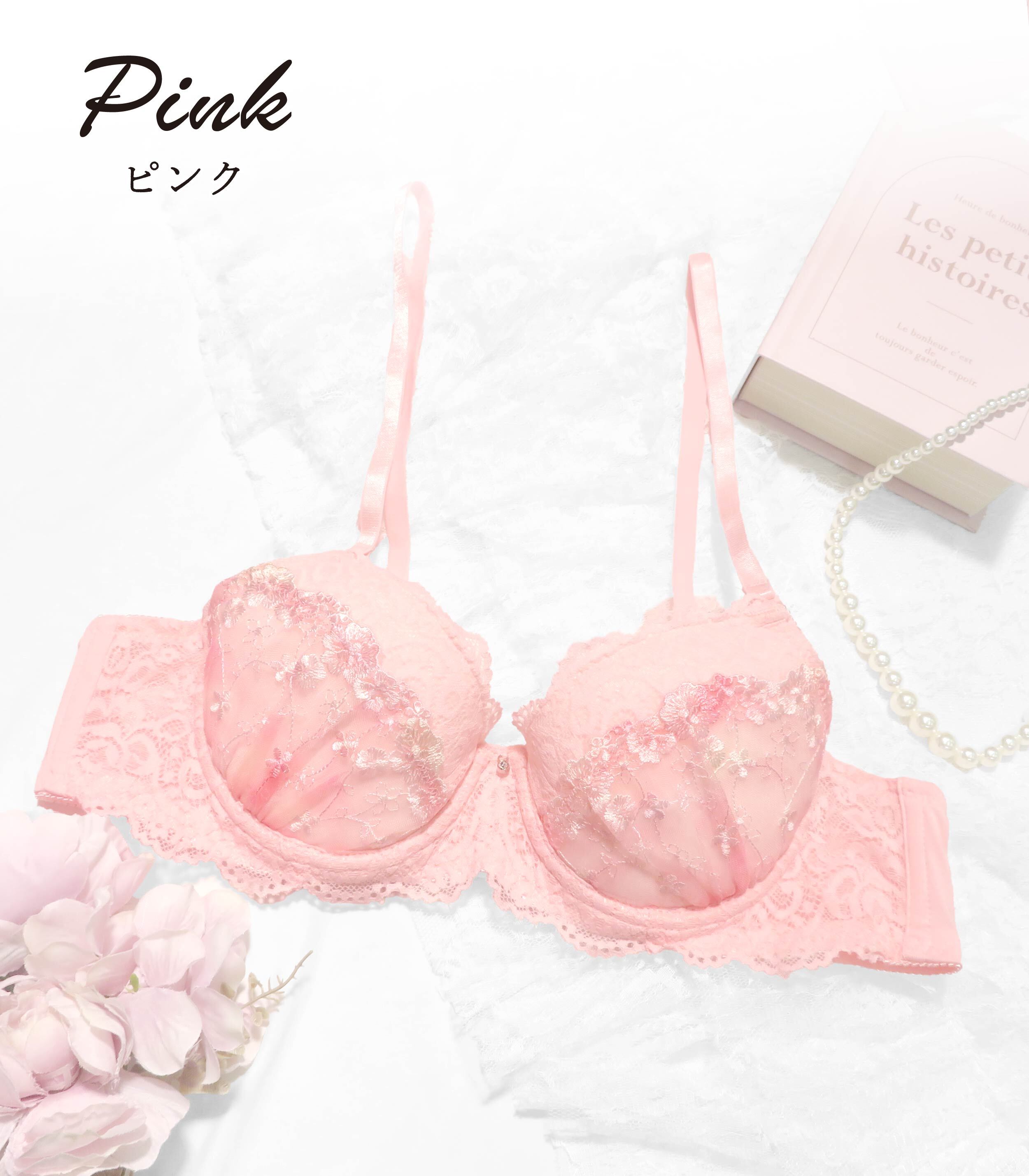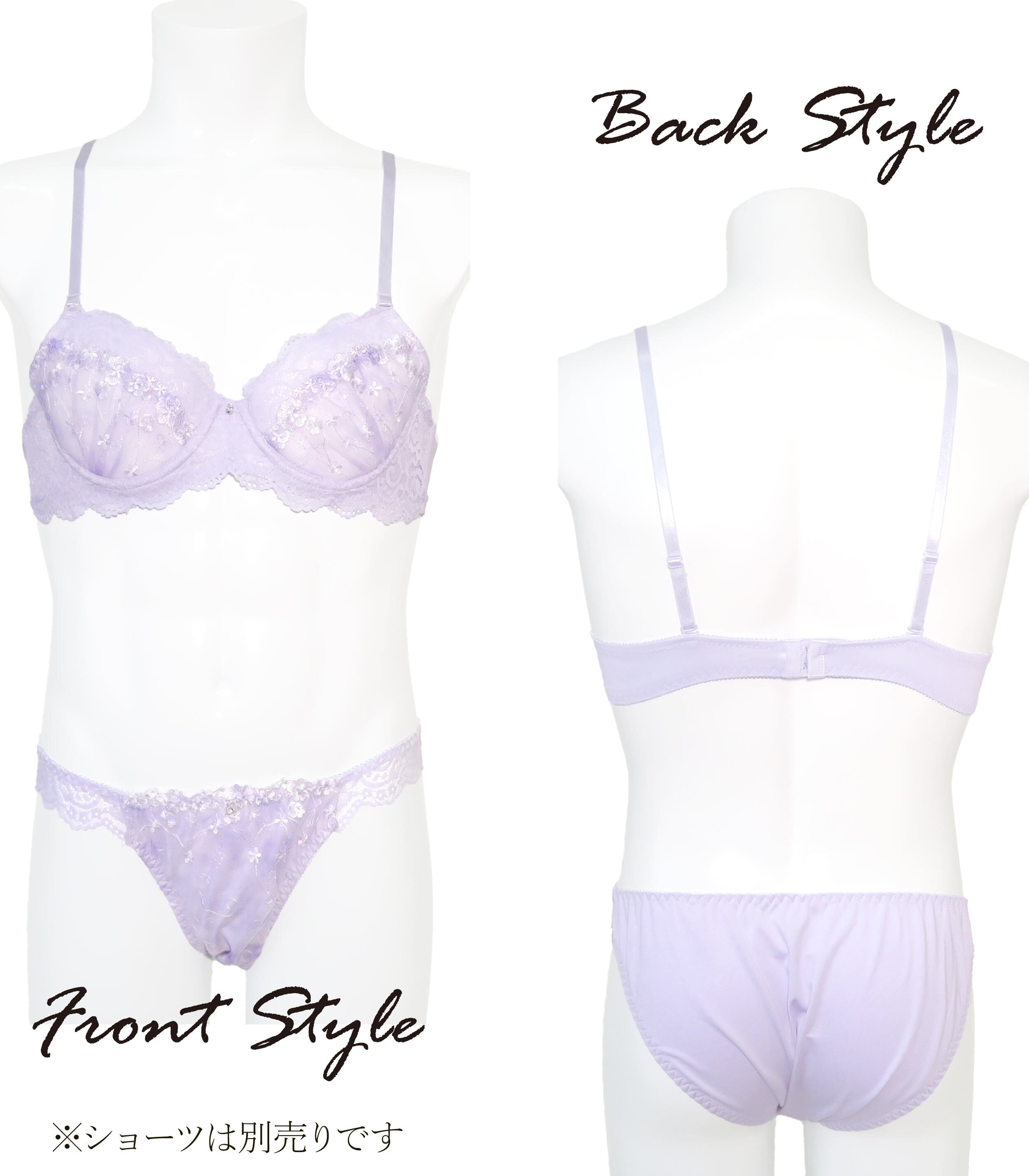 2種類の柔らかいレースと、お花の刺繍が重なった、乙女チックで夢かわいいデザインのメンズブラ。