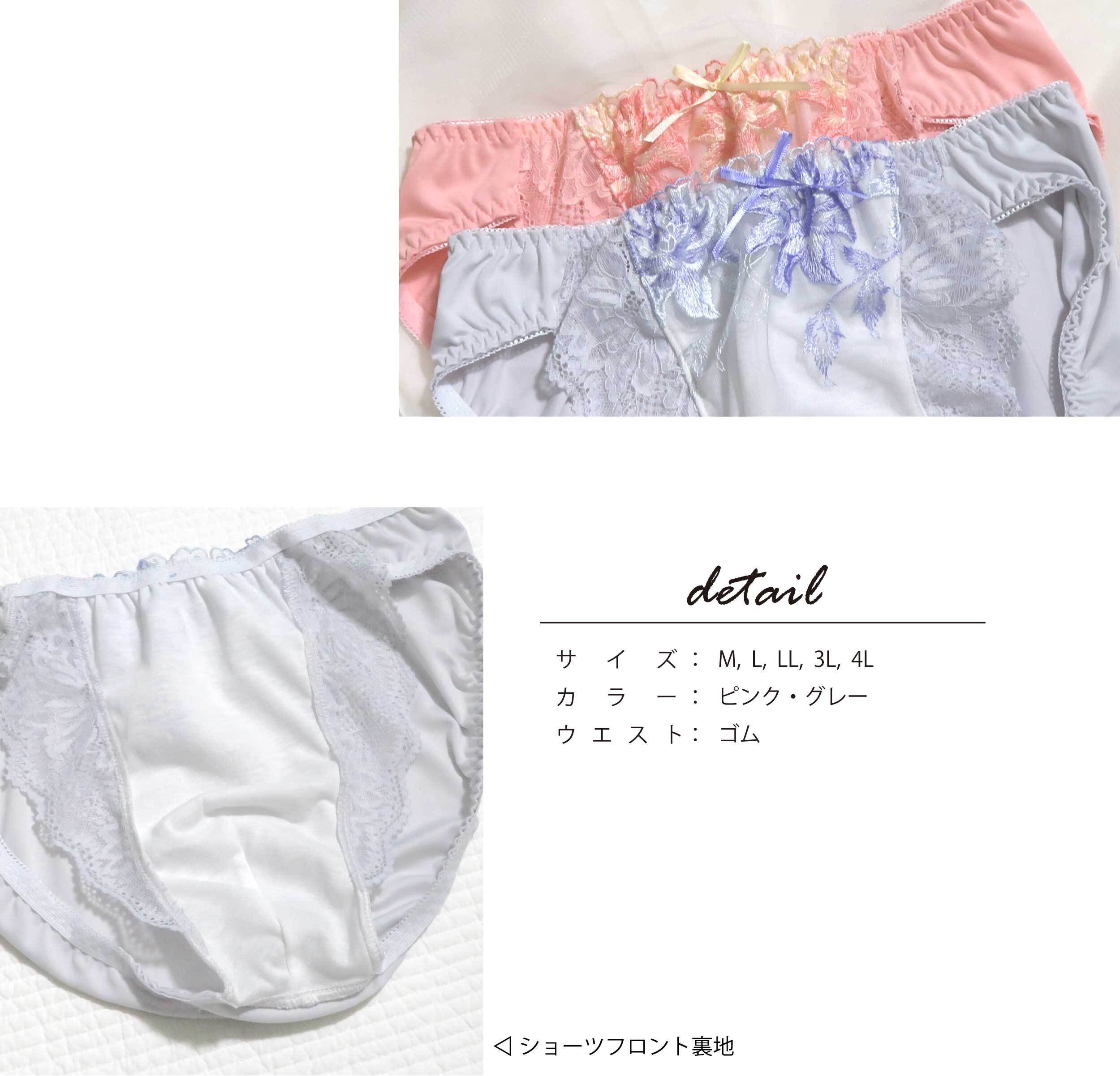 メンズ ショーツ M-4L 男性用 パンツ ユリ柄 刺繍 透け感 レース (JM-3703-S)[★メール便OK]【 M L LL 3L 4L ショーツパンティ 下着 ジェンダーレス トランスジェンダー かわいい】
