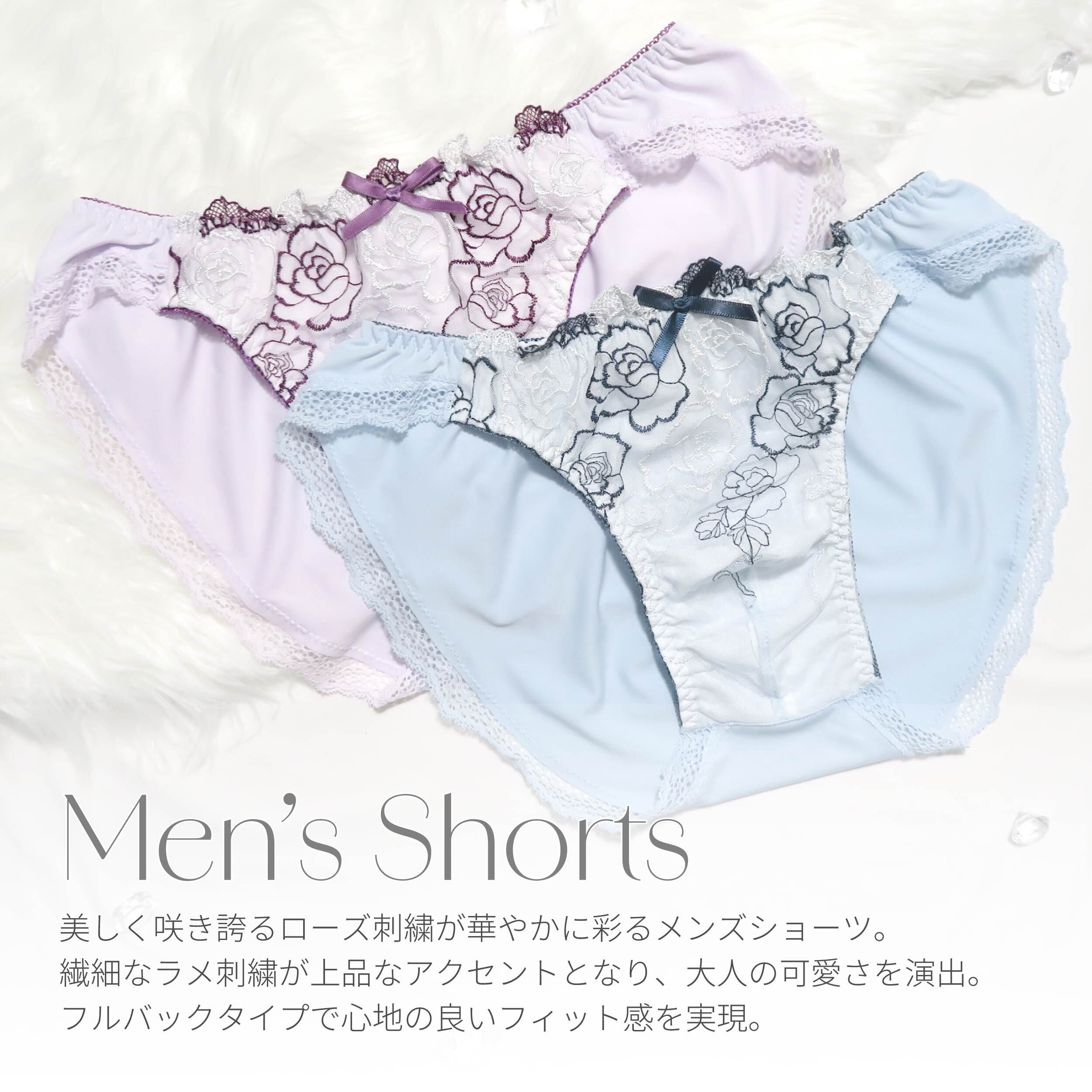 ローズ刺繍が上品に咲き誇り、胸元を美しく魅せてくれるメンズ用ショーツ。