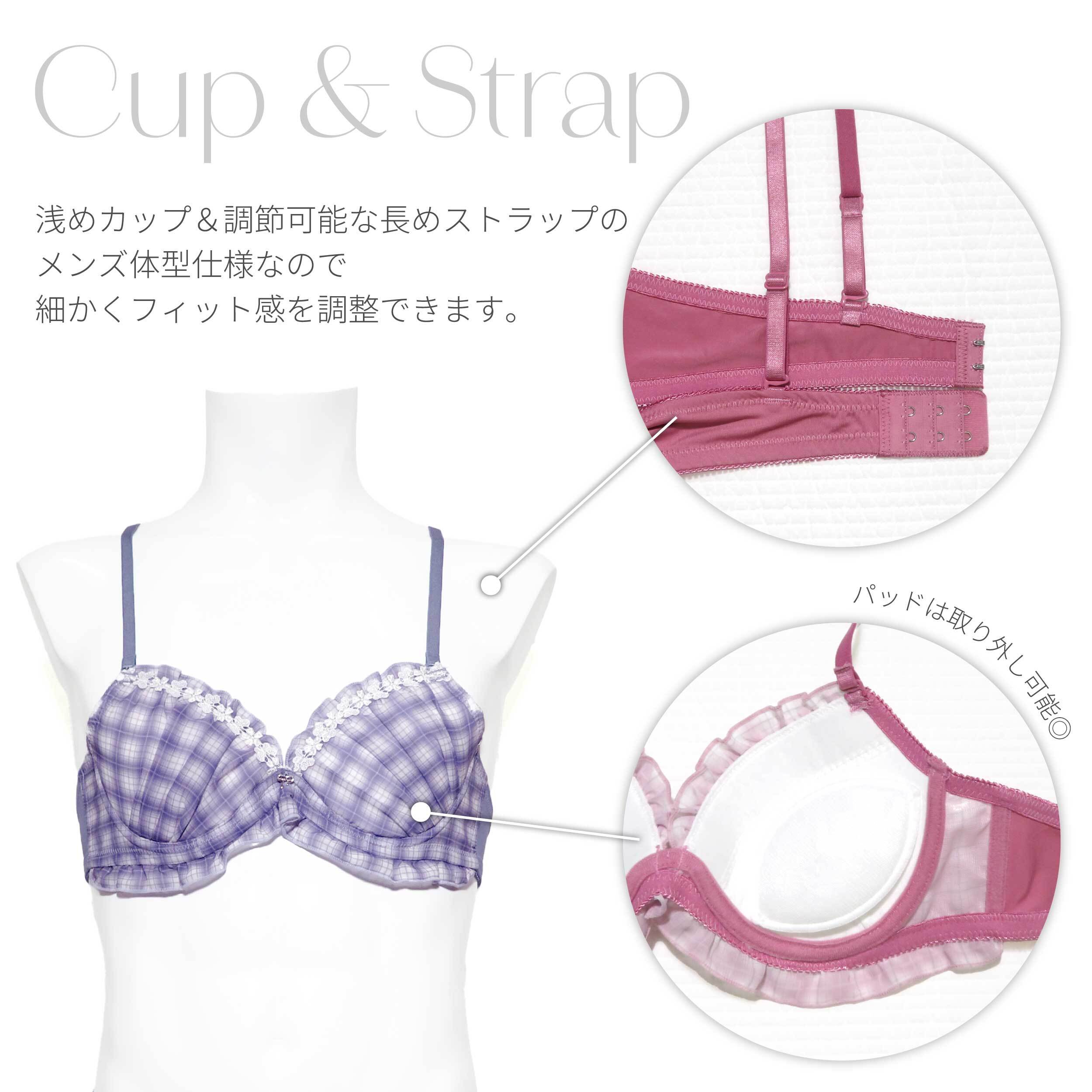 メンズブラ A85-A105 チェック柄プリント ピンク パープル (JM-3727-B)[メール便不可]【 男性用ブラ ブラジャー メンズブラジャー 下着 かわいい ジェンダーレス トランスジェンダー】