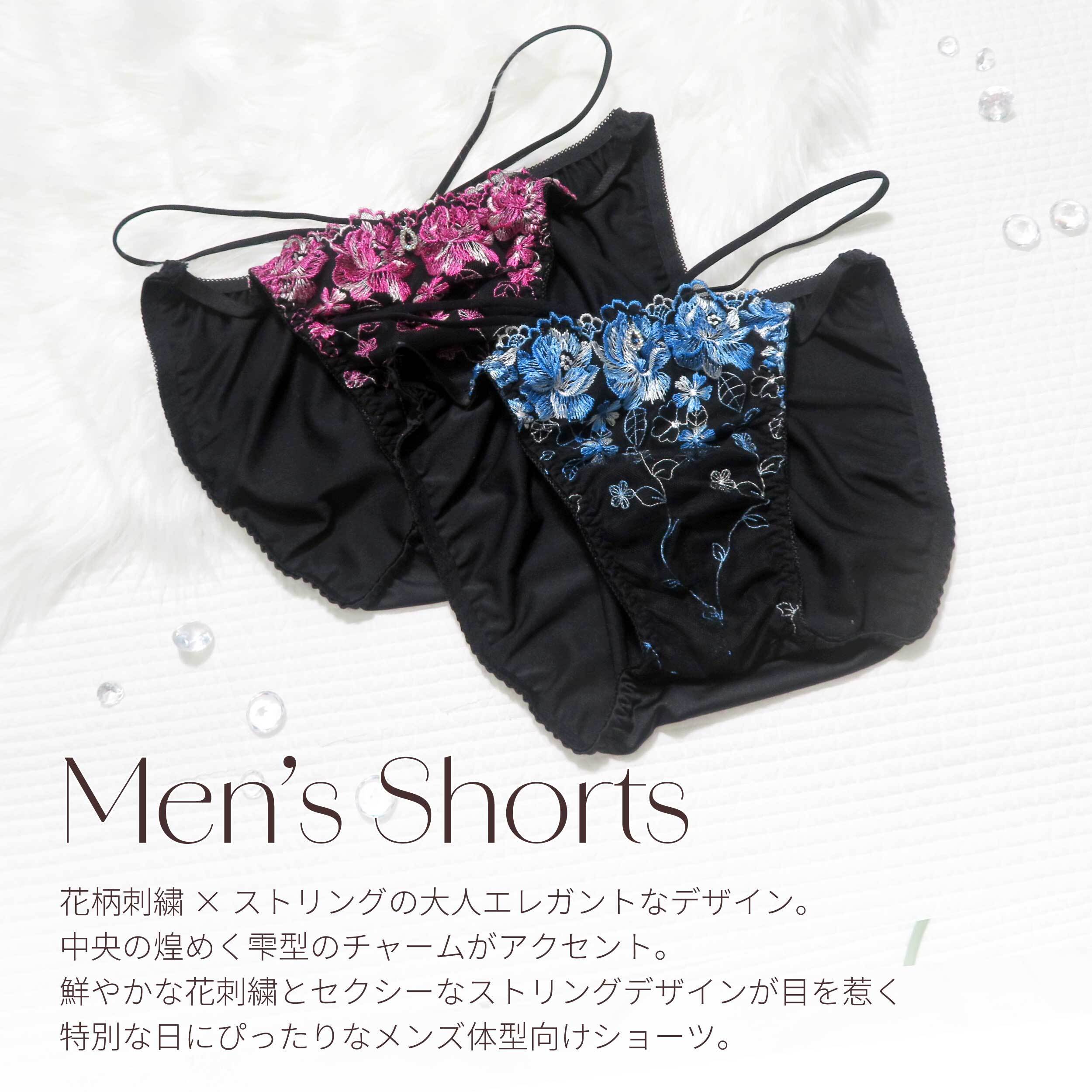 メンズショーツ M-4L 花刺繍 ストリング ピンク ブルー(JM-2199-S)[★メール便OK]【 M L LL 3L 4L 男性用ショーツ パンティ 下着 ジェンダーレス トランスジェンダー かわいい】