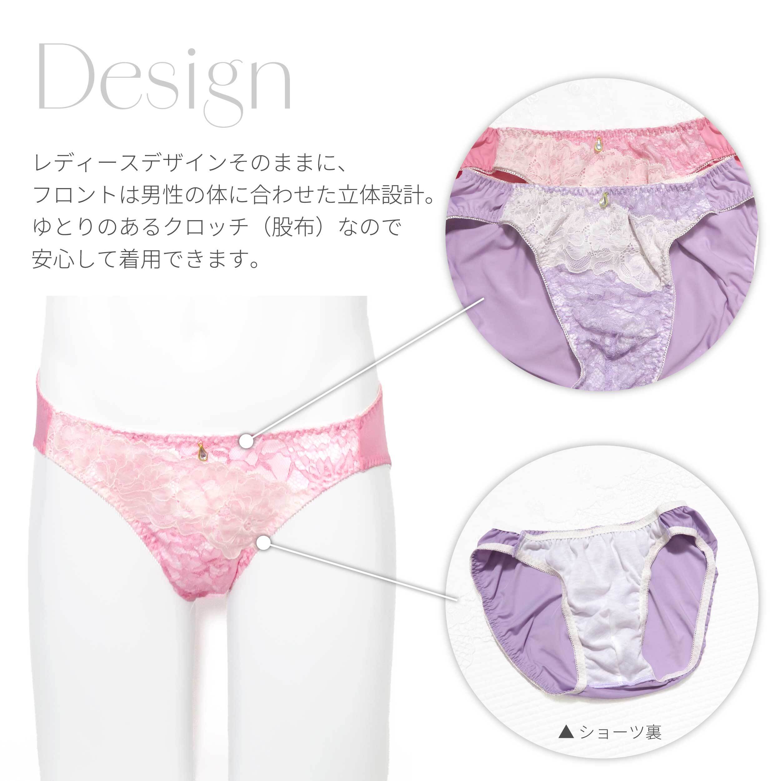 メンズショーツ M-4L 総レース ピンク パープル (JM-3690-S)[★メール便OK]【 M L LL 3L 4L 男性用ショーツ パンティ 下着 ジェンダーレス トランスジェンダー かわいい】