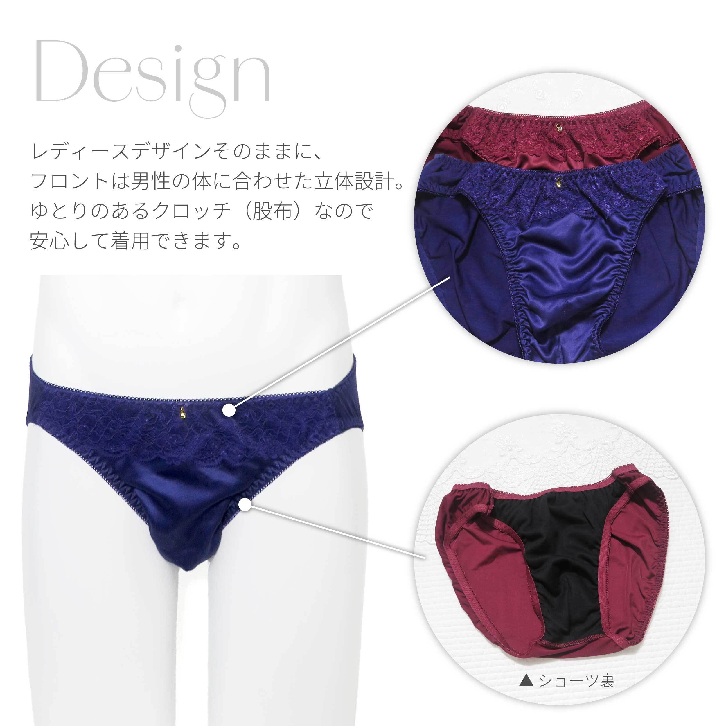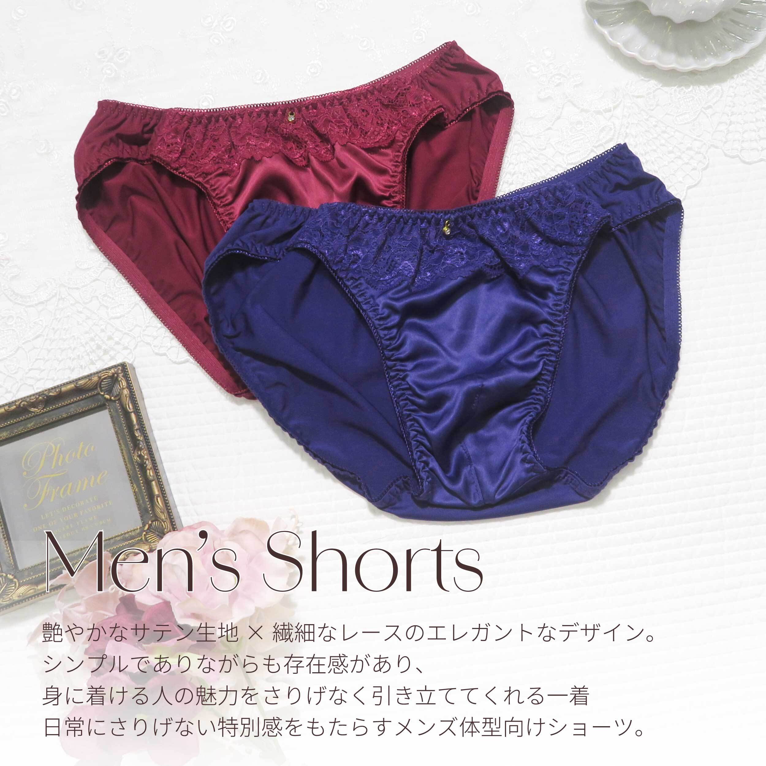 艶やかなサテン生地×繊細なレースのエレガントなデザインのメンズ用ショーツです。