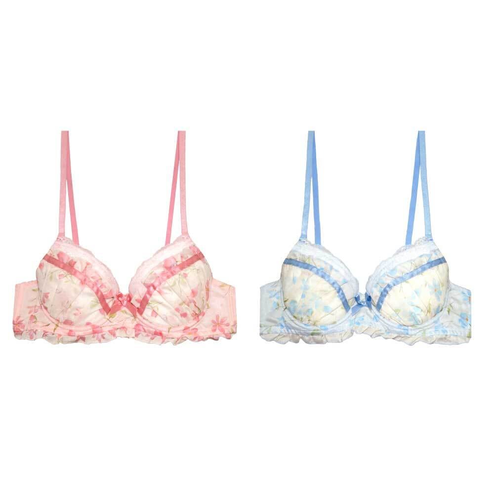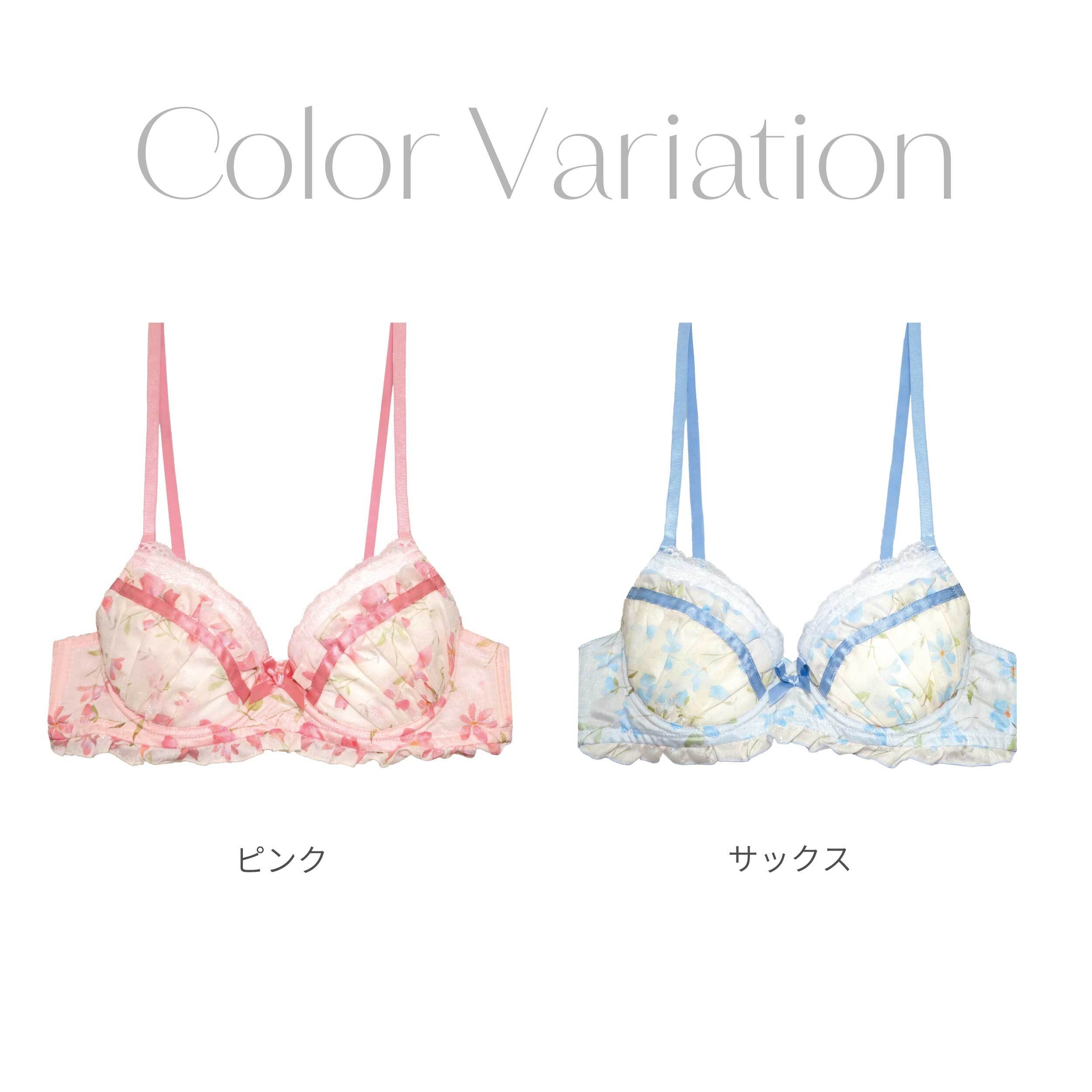メンズブラ A85-A105 フラワープリント リボン ピンク サックス (JM-1308-B)[メール便不可]【 男性用ブラ ブラジャー メンズブラジャー 下着 かわいい ジェンダーレス トランスジェンダー】