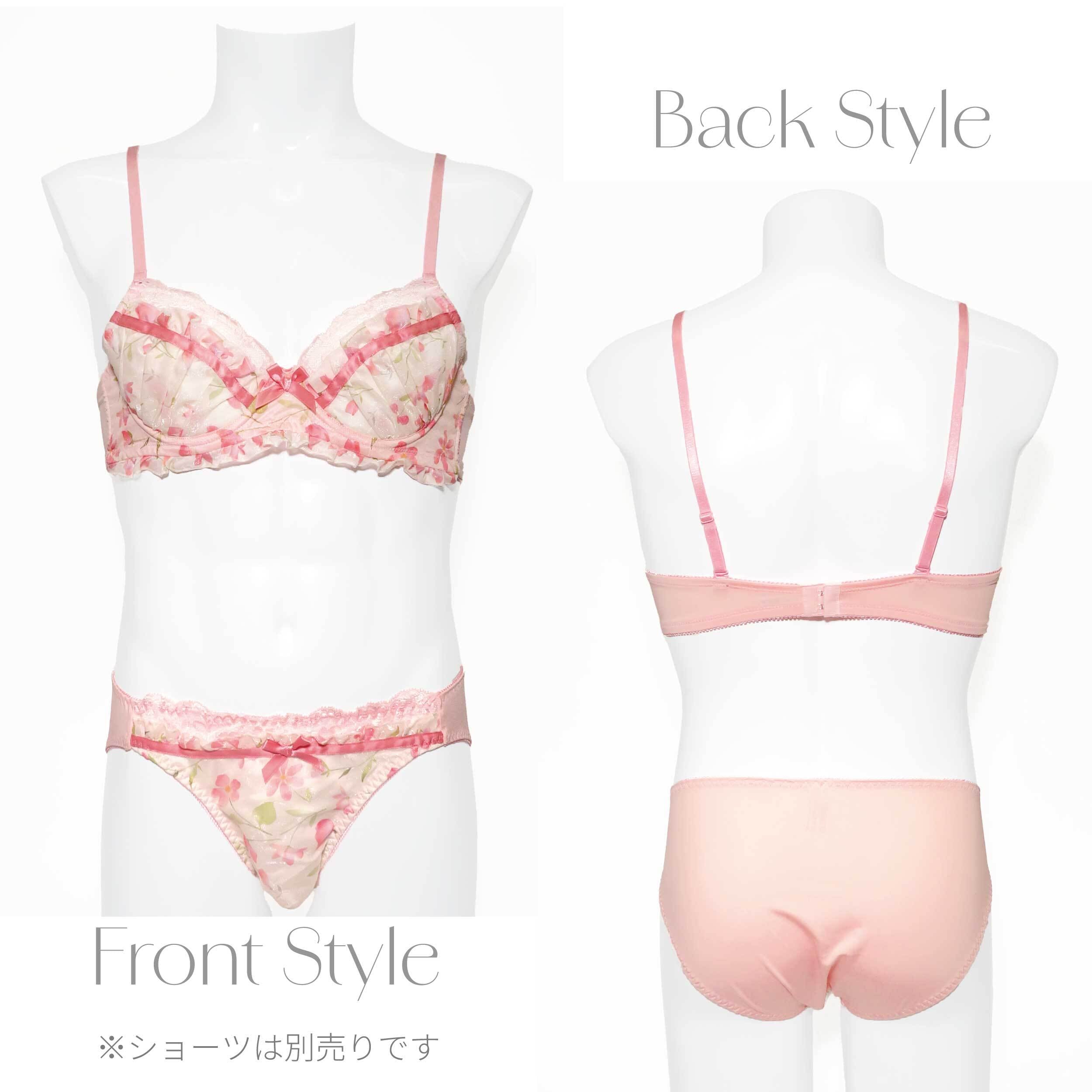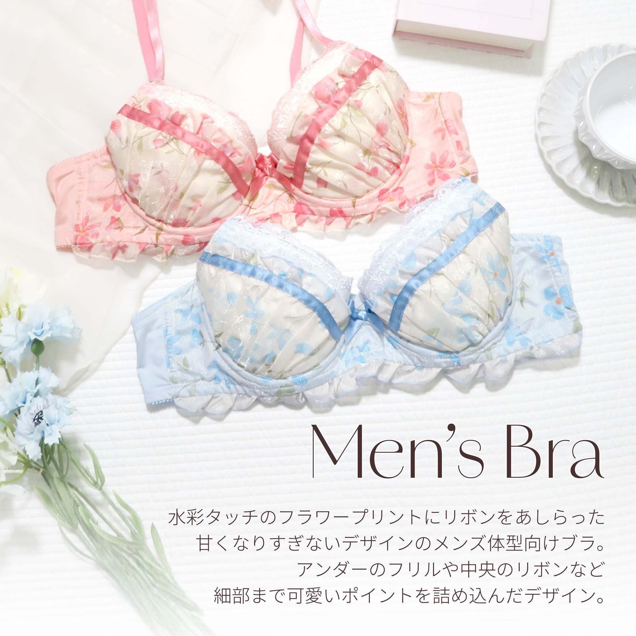 水彩タッチのやさしいフラワープリントに、リボンをあしらったデザインのメンズ用ブラジャーです。
