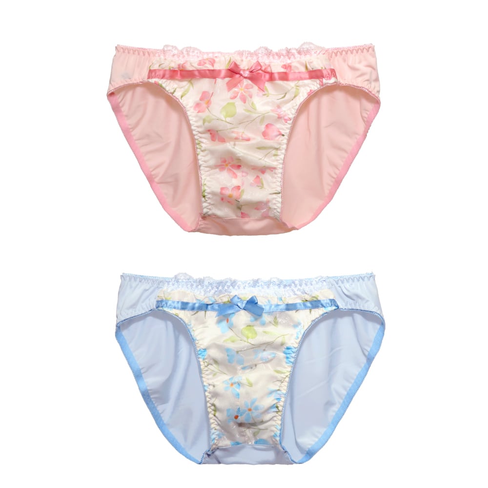 メンズショーツ M-4L フラワープリント リボン ピンク サックス (JM-1308-S)[★メール便OK]【 M L LL 3L 4L 男性用ショーツ パンティ 下着 ジェンダーレス トランスジェンダー かわいい】