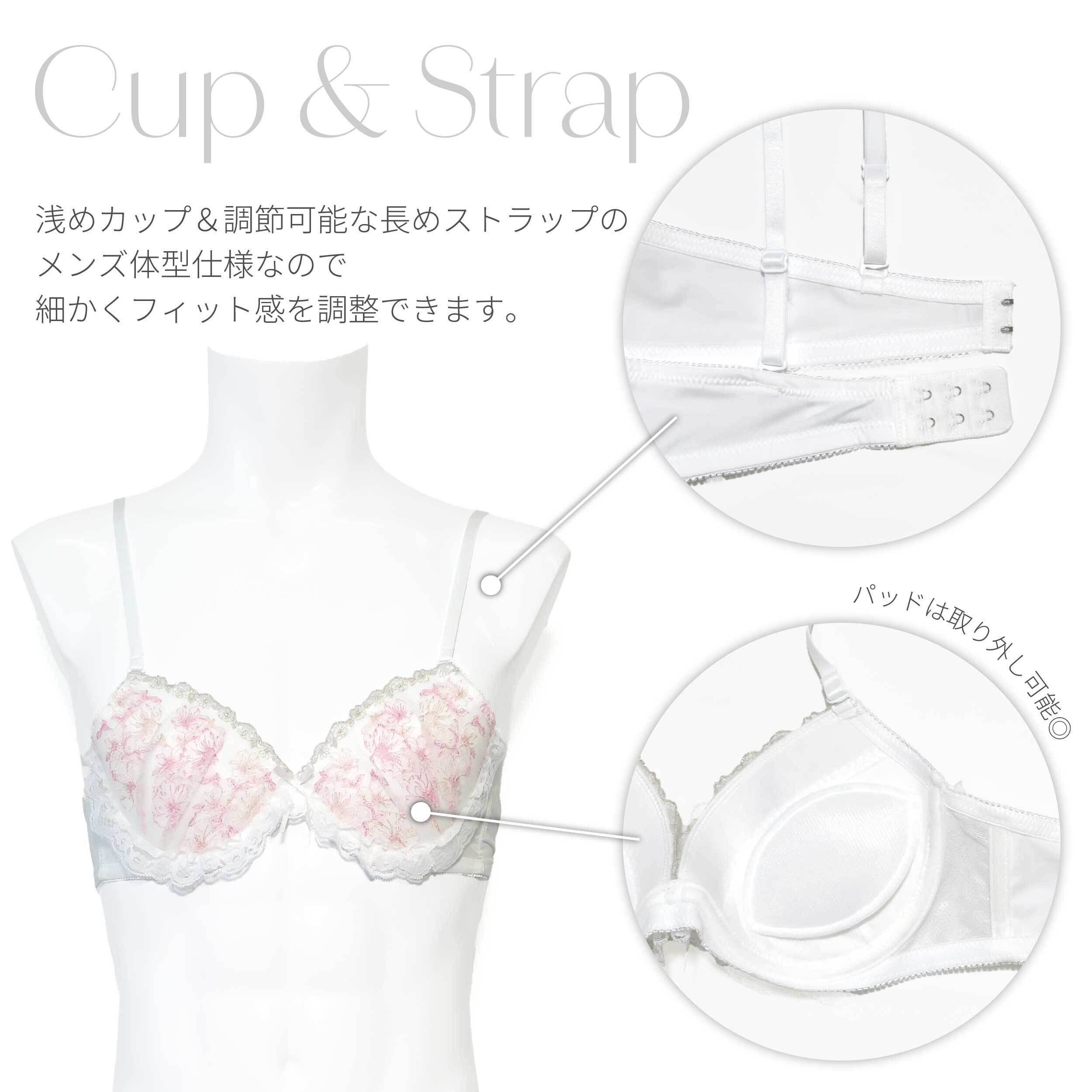 メンズブラ A85-A105 花刺繍 ホワイト ミント (JM-3718-B)[メール便不可]【 男性用ブラ ブラジャー メンズブラジャー 下着 かわいい ジェンダーレス トランスジェンダー】
