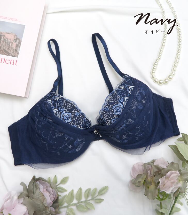 ミニローズ刺繍レースがフェミニンなブラ。ヴェールのように重ねたチュールが上品な一着。中央のジュエルチャームがアクセント。実際につけてみたい、初めてのメンズブラに挑戦したい、そんな方におすすめ。カップの丸みが分かりにくく、メンズ体型用なので体にフィットします。お揃いのショーツもお見逃しなく。